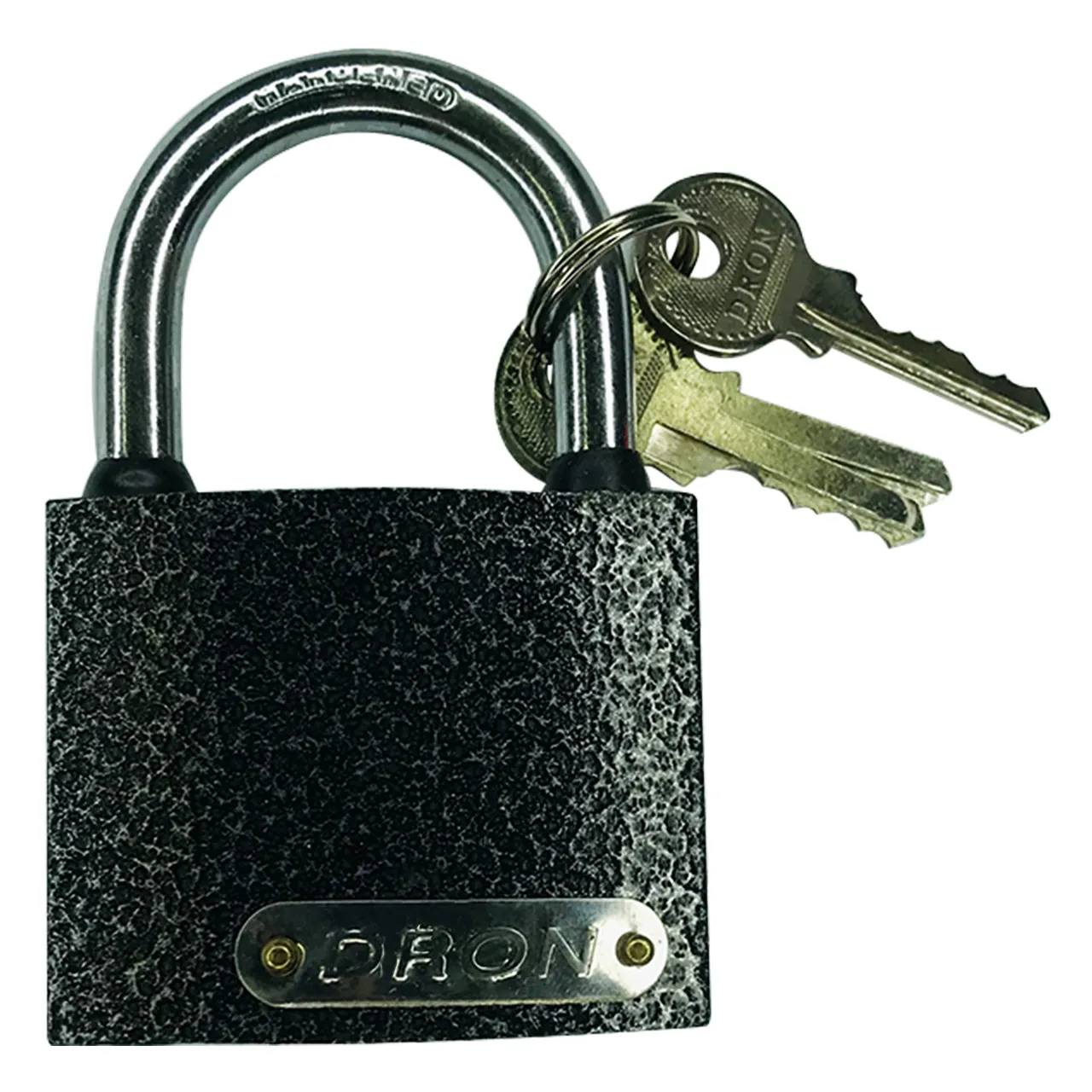 Толстая дужка из хромированной закаленной стали оборудована влагозащитными манжетами. В конструкции замка предусмотрено удобное автоматическое запирание без ключа, которое происходит при нажатии на дужку.
