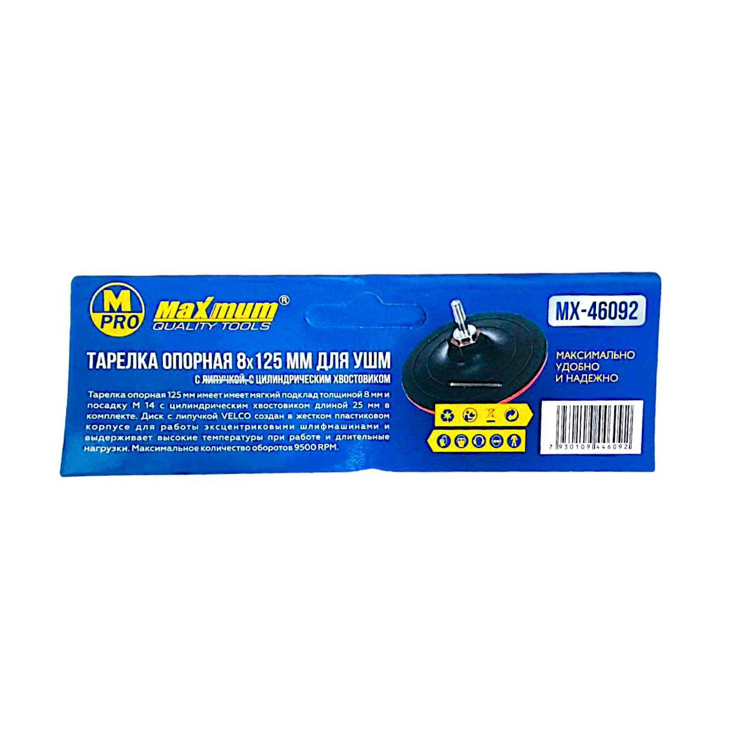 Тарелка опорная 8×125 мм для УШМ, с липучкой, цилиндрический хвостовик, "MAXIMUM" (Максимум)MX 46092